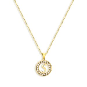 Make a statement with the Cherish Me Necklace! Featuring an initial pendant and sparkling CZ stones. this waterproof necklace is the perfect accessory for any occasion. Show off your unique style with this personalized stylish piece.?