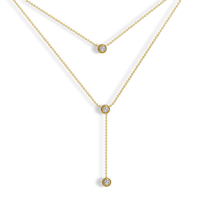 Elevate your style with our elegant Dahlia Necklace! Featuring a dual chain design and sparkling bezel stones. this necklace is the perfect accessory to add a touch of glamour to any outfit. Upgrade your jewelry collection and make a statement with the Dahlia Necklace.