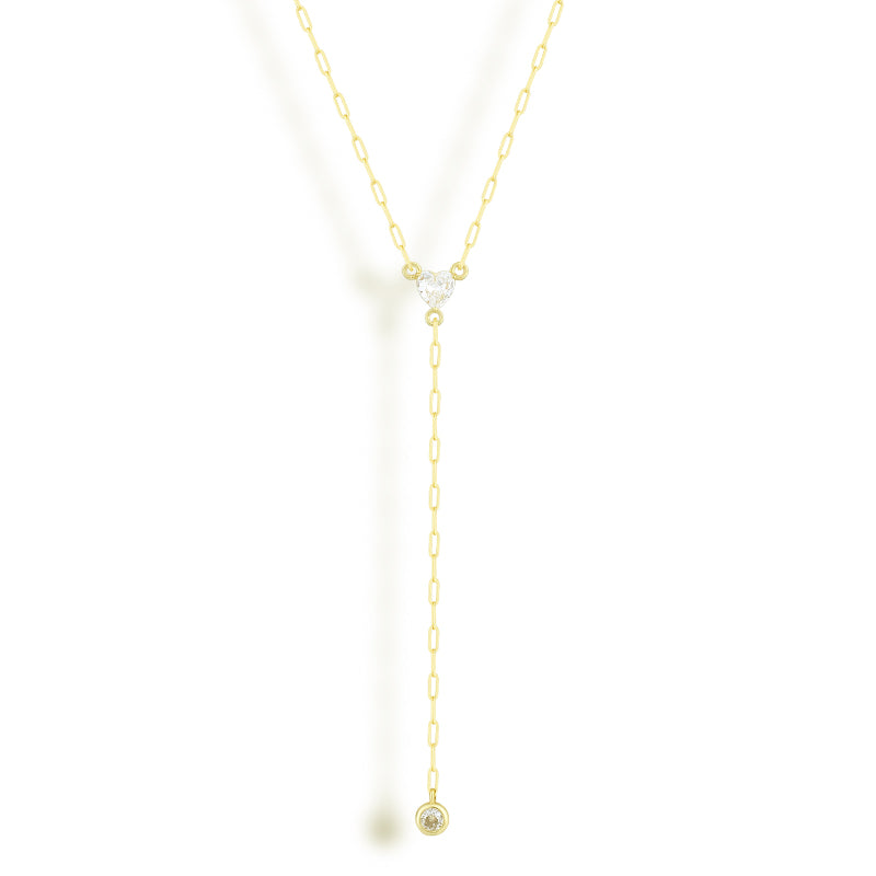 Transform your outfit into a fashion statement with our Heart of Stone Lariat Necklace. Featuring a stunning heart stone and bezel round stone. this necklace adds a touch of elegance and charm. Embrace the timeless beauty and make a bold statement with this must-have accessory.